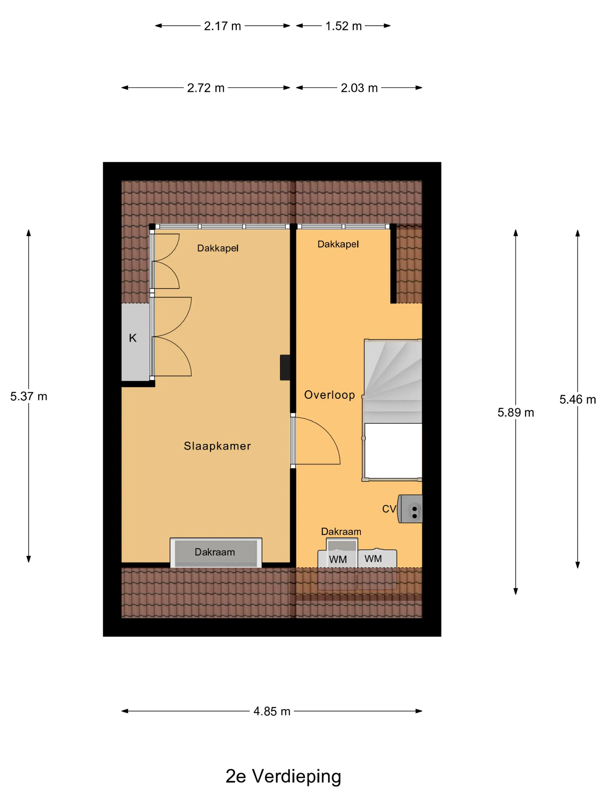 (Zolder) slaapkamer: 5,37 x 2,72m.