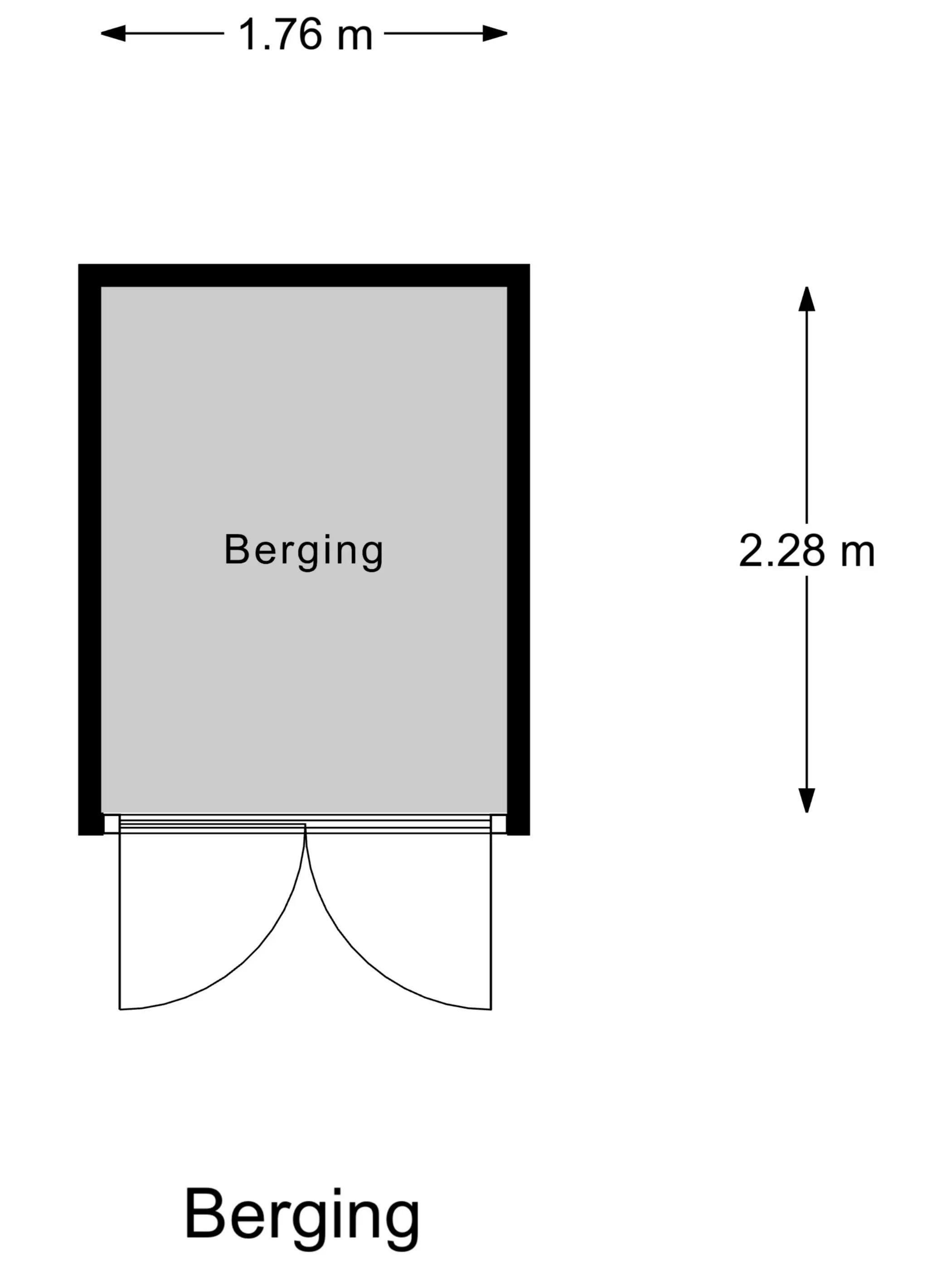 Berging tuin: 2,28 x 1,76m.