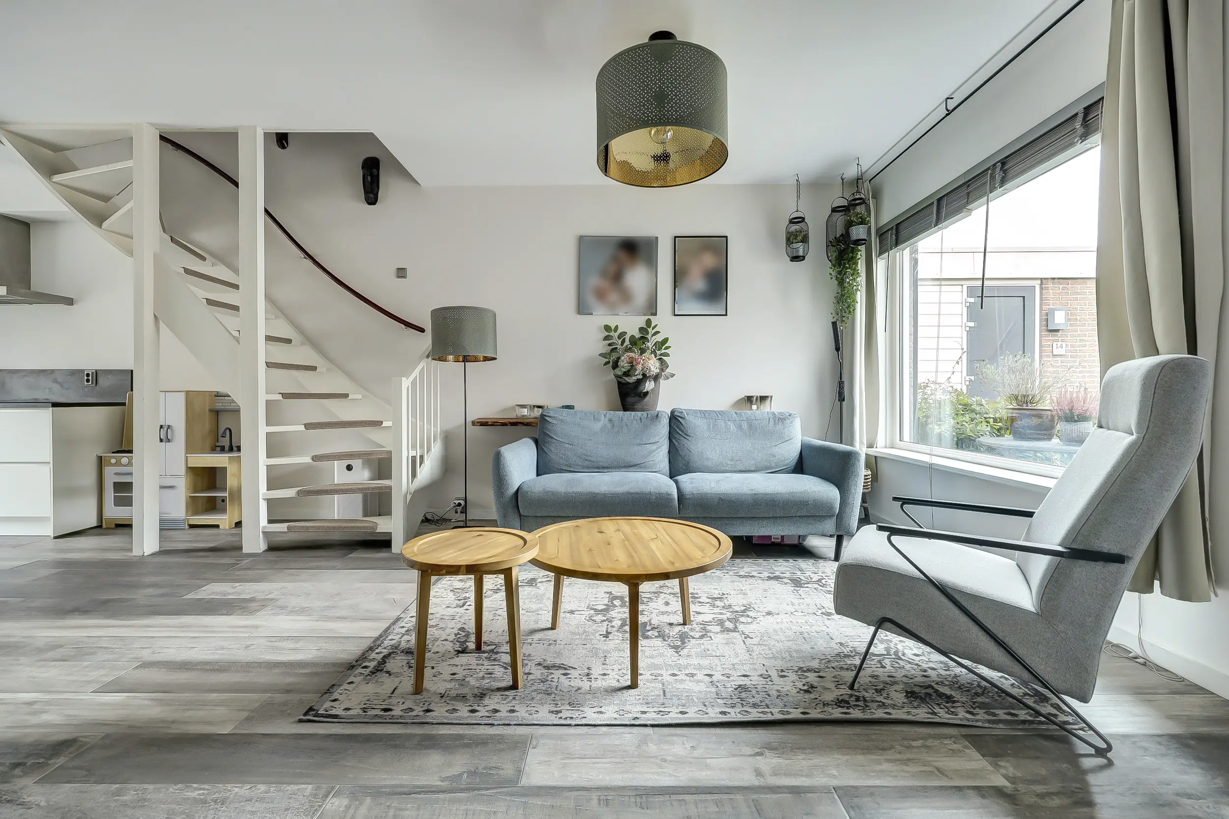 Woonkamer: 5,34 x 4,86m.