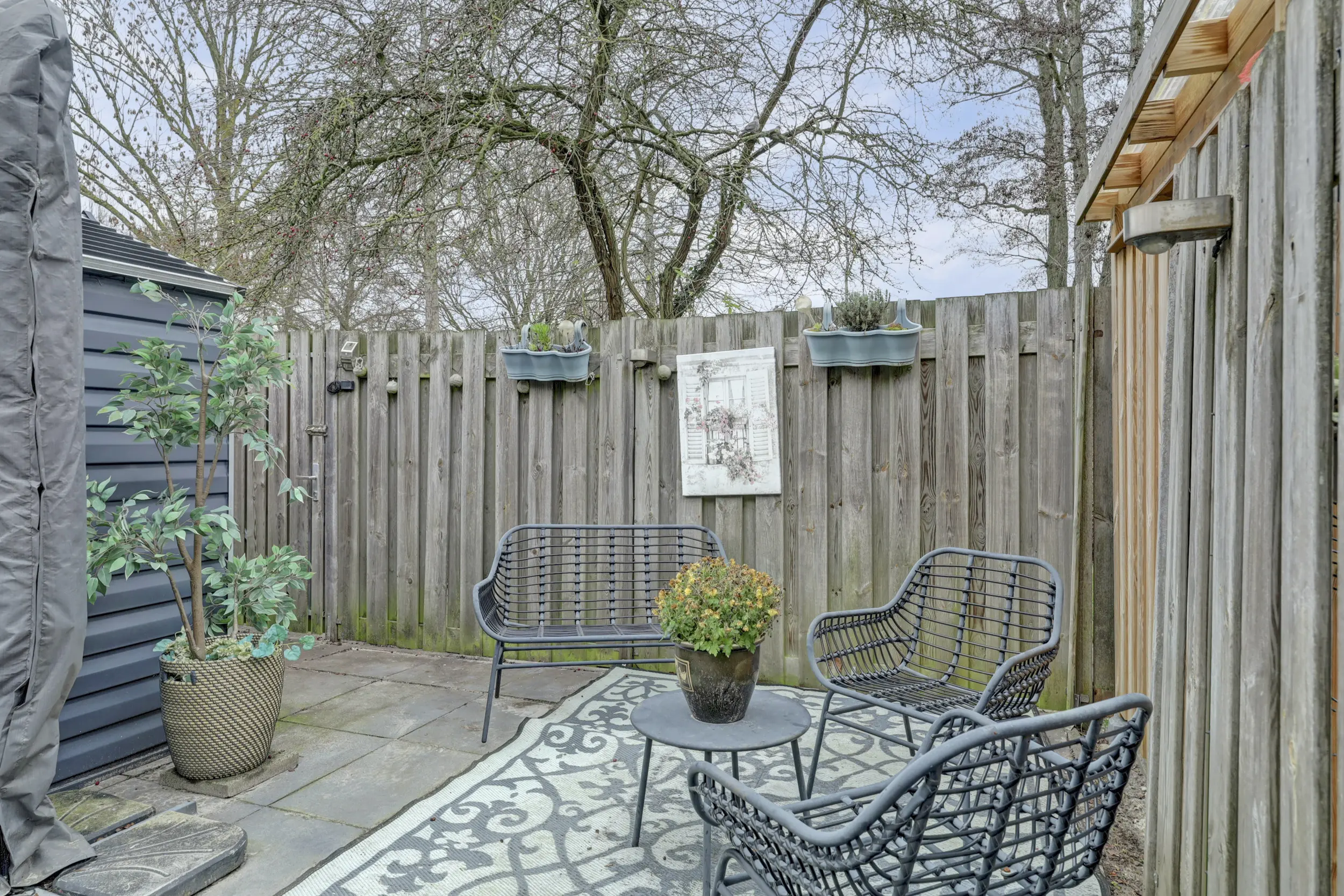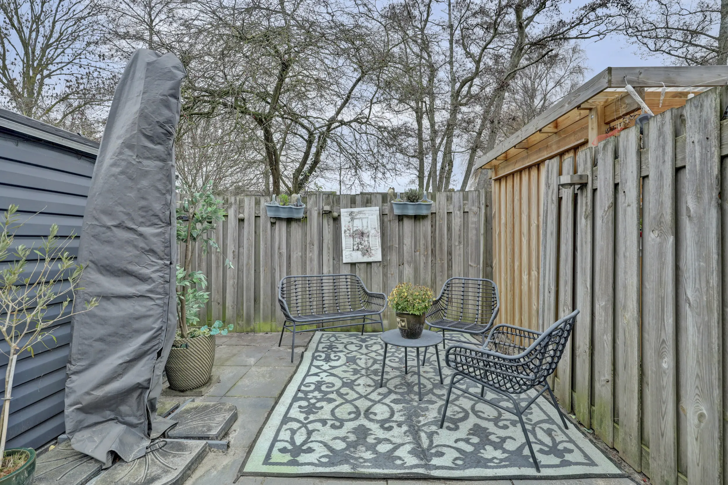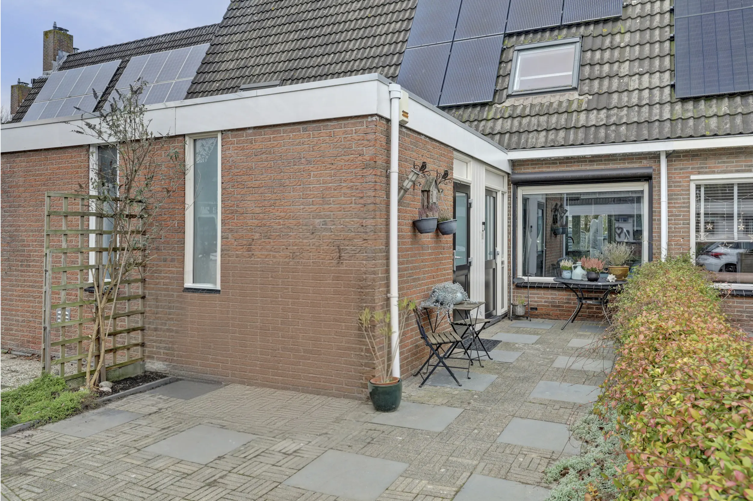 Zowel de voor,-als achtertuin is onderhoudsvriendelijk en de achterzijde beschikt over schuttingdelen, bestrating met vaste plantenbakken, berging, een buitenkraan en een achterom.